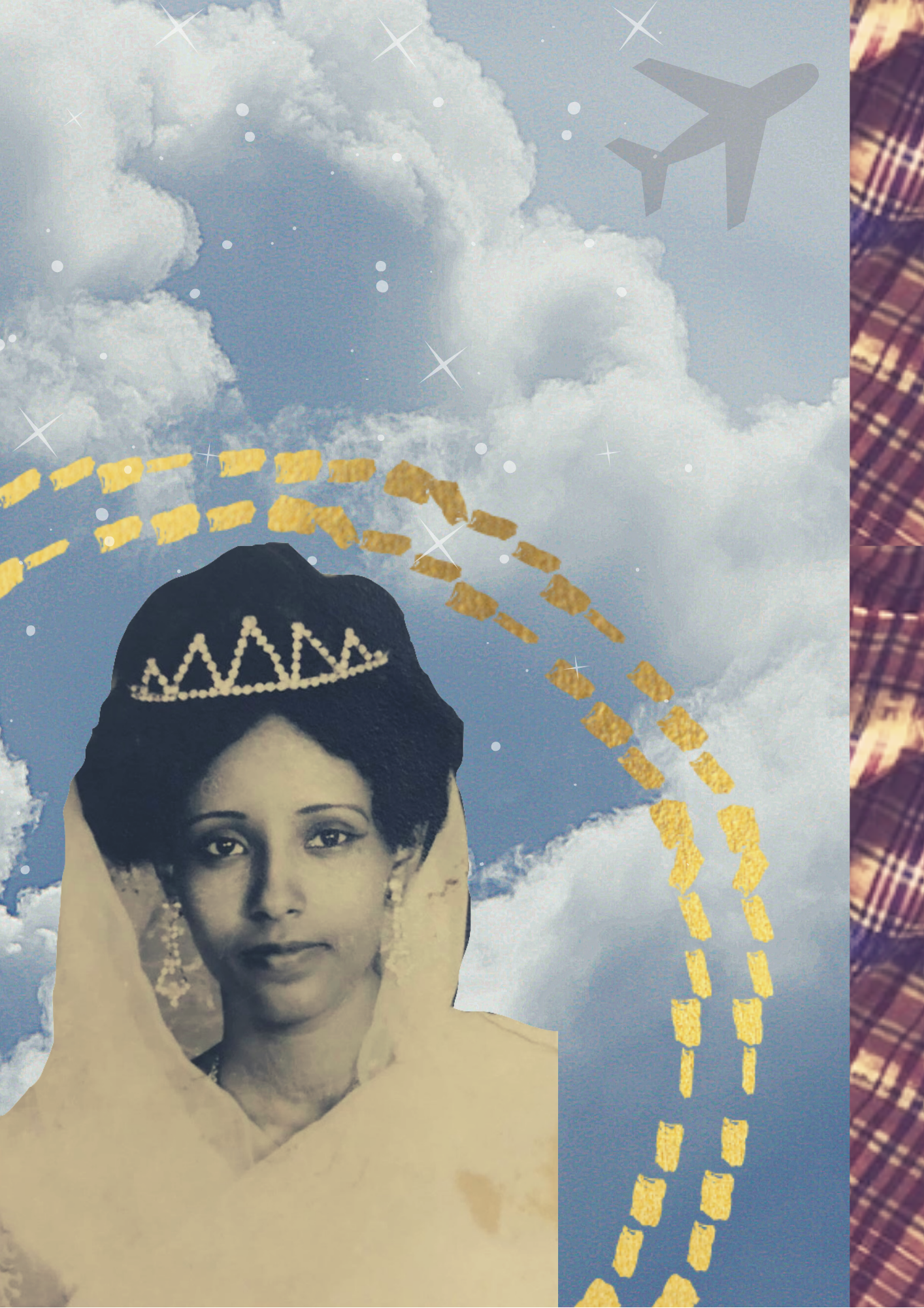Faatimah Solomon is a poet, writer, and collage artist whose work explores themes of longing, homemaking, memory, diaspora, and exile. Her work is archival in nature and draws from Sudanese personal and familial histories – specifically through forms of oral storytelling traditions, family photographs, and piecing together community and family trees. Sudanese by way of Riyadh, Saudi Arabia and the Bay Area, Faatimah is influenced by moments of transnational intimacies and confluence. She is deeply moved by the creative possibilities of inherited and imagined emotional geographies and lineages. Her collection of poetry, confluence of the two niles – which includes visual collages – explores the yearning for home beyond the nation-state and tenderly centers sites of rupture and juncture where she finds her habobas (Sudanese Arabic word for ‘grandmothers’) and they find her.