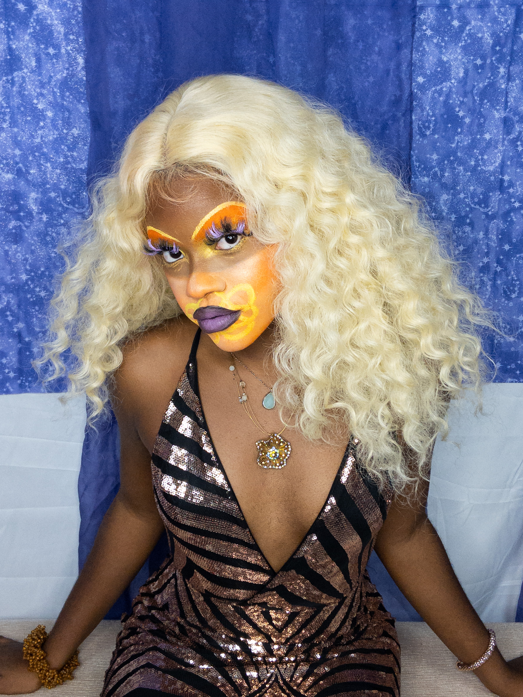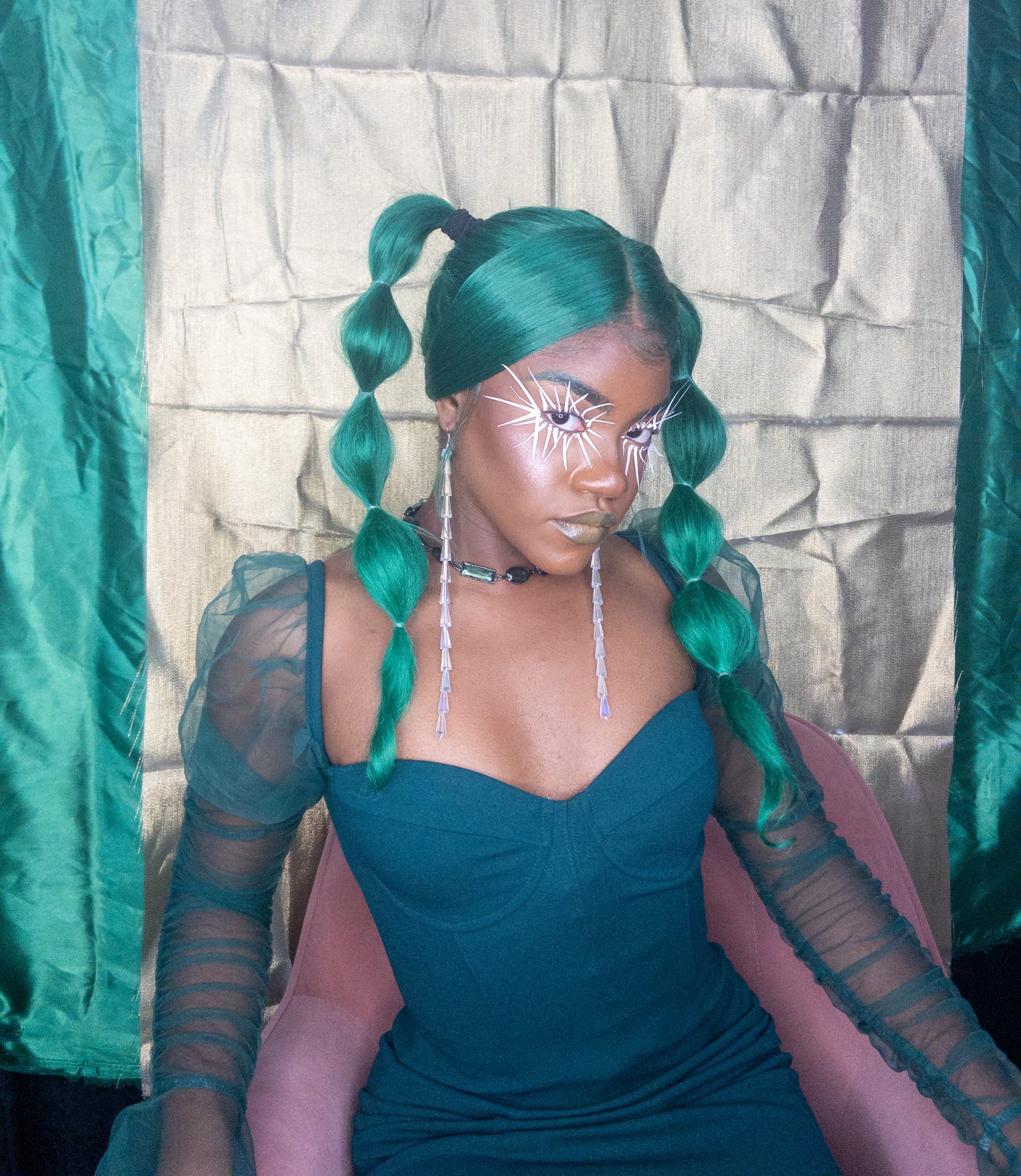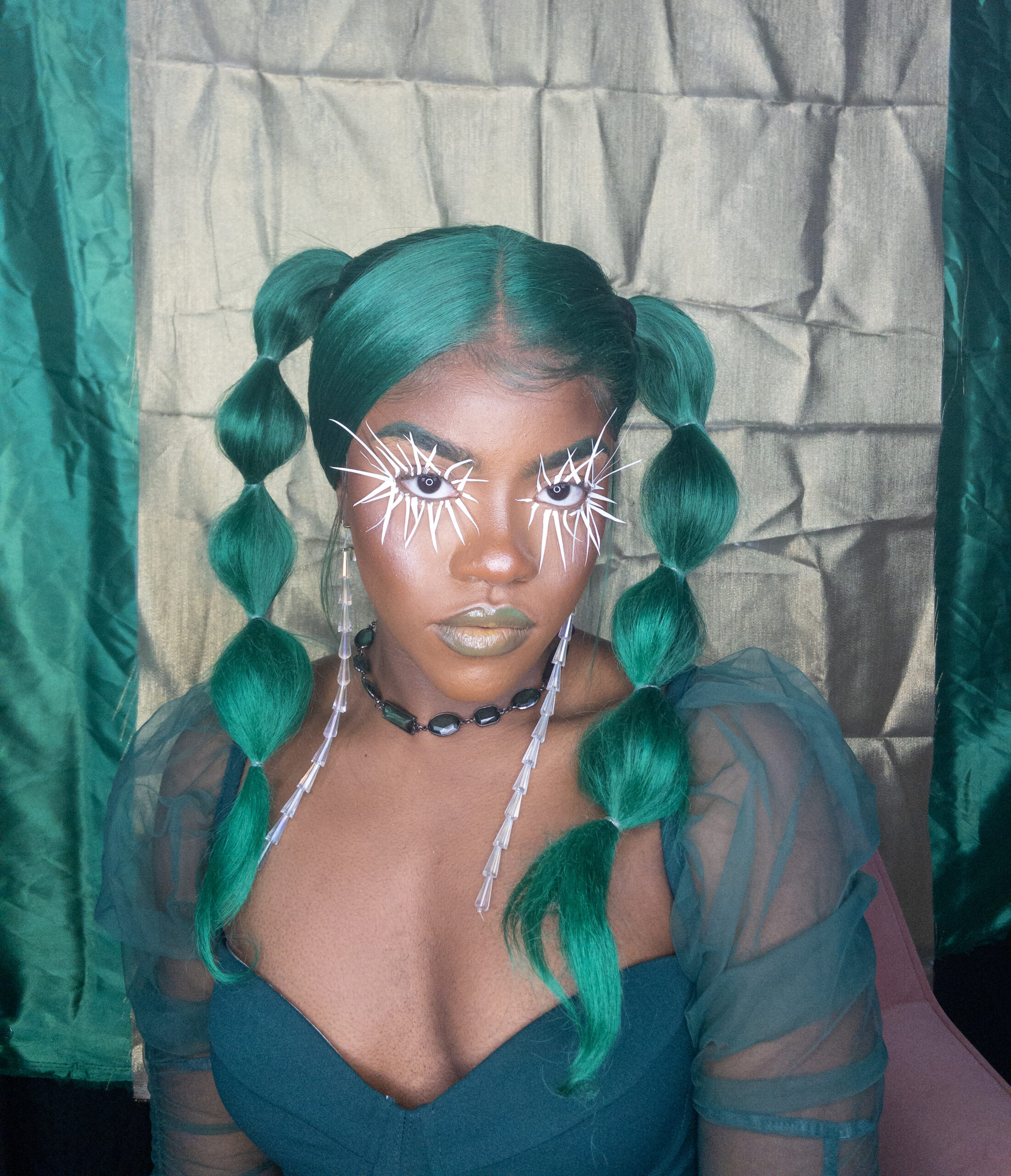 Stara D’Haiti(any/all pronouns) is an Afro-Caribbean makeup and visual artist, who creates work as a vehicle to share life-affirming thoughts. They are currently a student at Stanford University, '24, with intended majors of African and African American Studies and Energy Resources Engineering. Their work uses a broad variety of visual arts and material aesthetics as a storytelling device to investigate standards of beauty, love, identity, judgment, fear, community, and creativity. With productions built on principles of boundlessness, they address, resist, and subvert white supremacy+its institutions. Centered in the process of their art, Stara continues to build their portfolio in makeup artistry, costume design (hair, fashion, etc.), world-building, and multimedia art direction, while exploring their practice as an act of social movement and (self)transformation. Their current project titled "Unknown Territories" will be their first large-scale project supported by fellowship at the Institute for Diversity in the Arts (read more below).