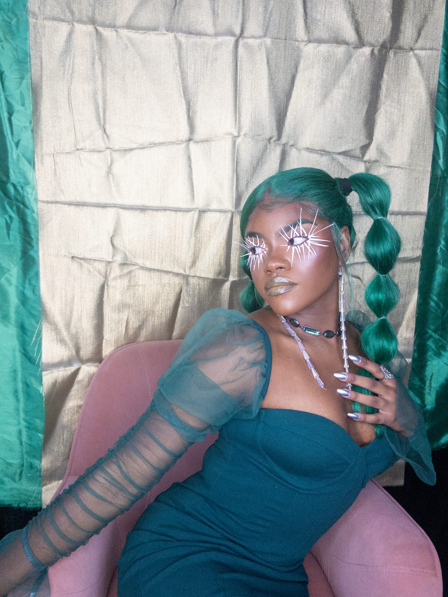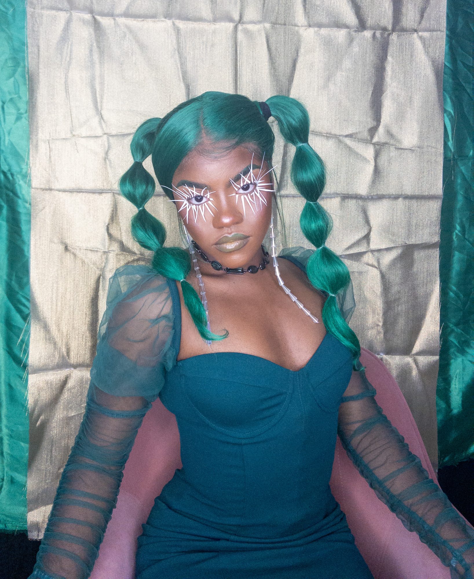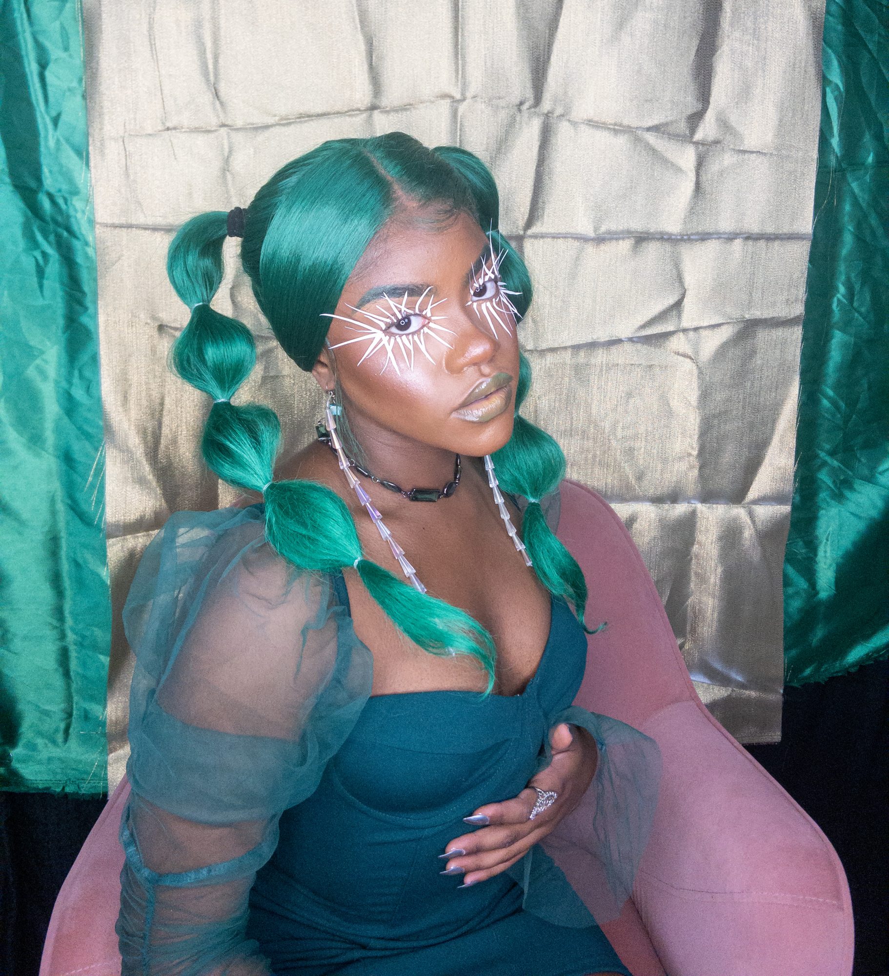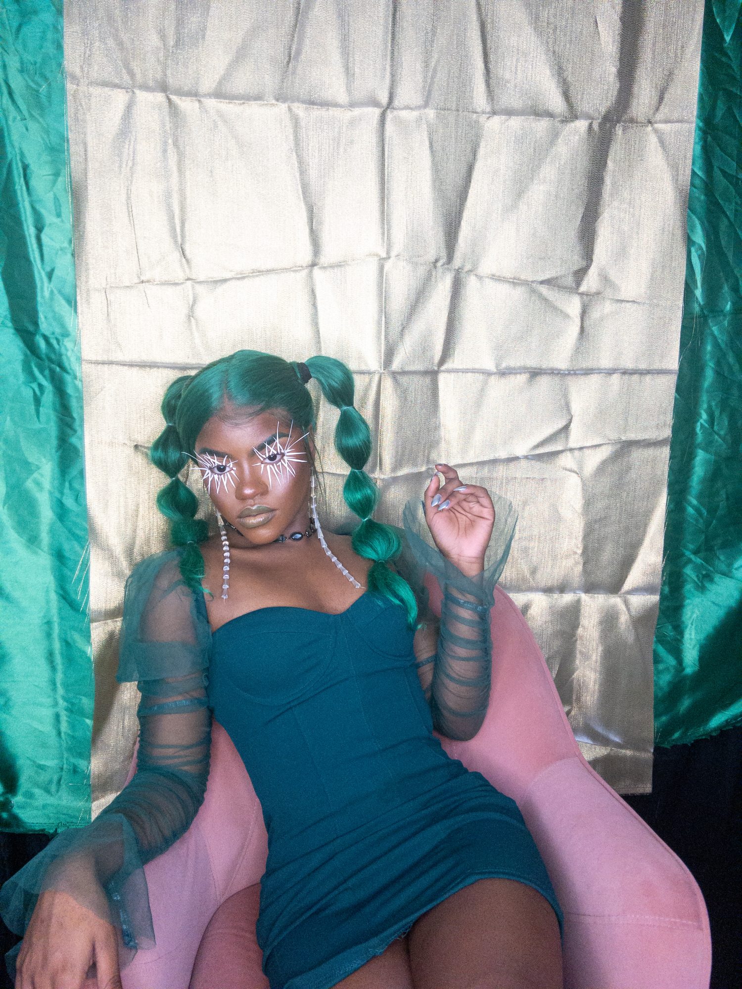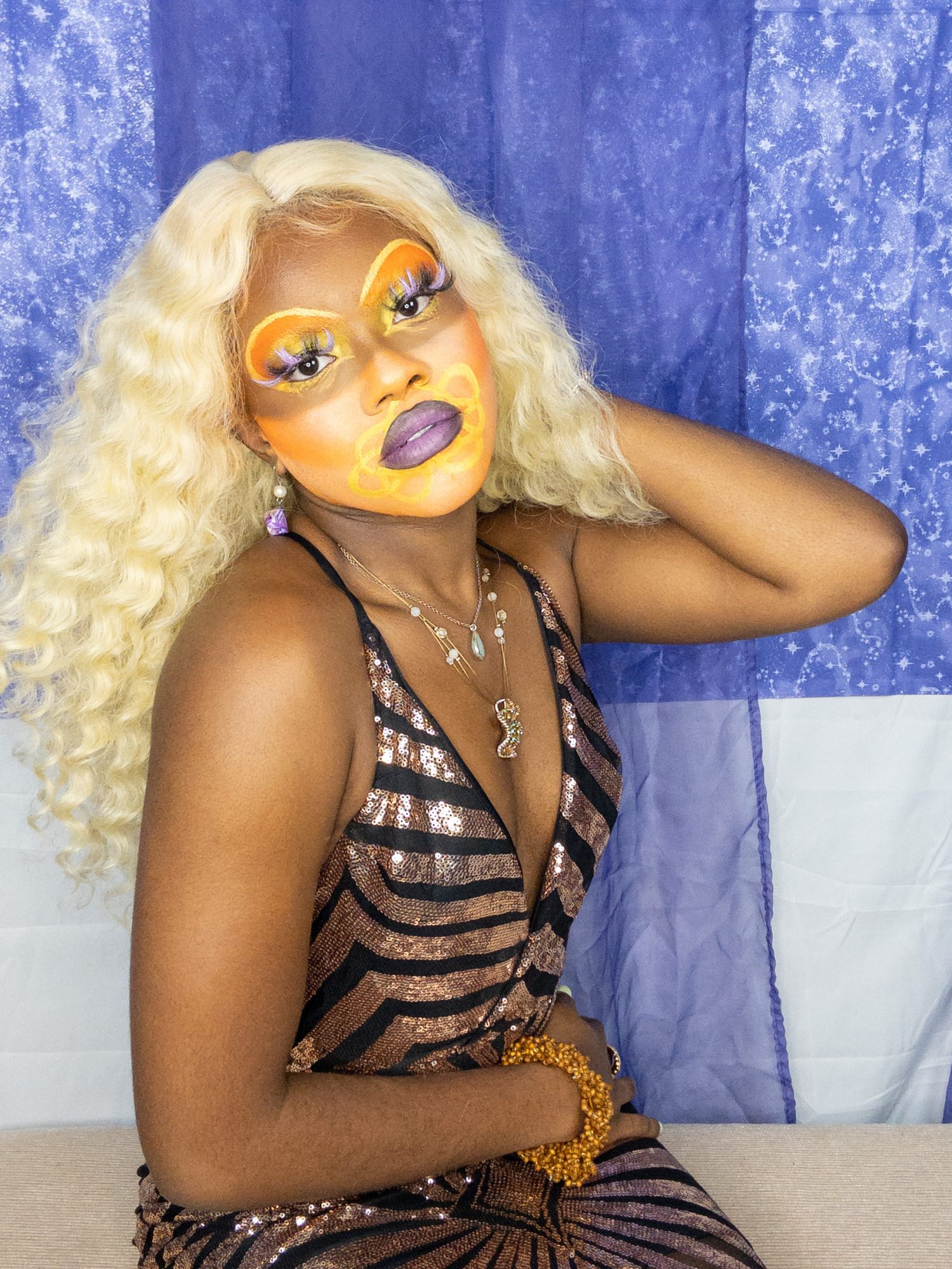 I create multimedia projects to think critically of the human experience, especially of its abstract essences (i.e. ontology). I am interested in the fundamental ways we come to know ourselves and the environment and exist across space and time. Conducting interdisciplinary research at the interstices of Black Trans* and Feminist thought, anthropology, physical sciences, and spiritual wisdom, I examine how individual journeys and their experiences , shape present and growing constructs of the world. Through the artistry of editorial and costume makeup, cosmetology, and the visual arts, I imagine alternative landscapes in which the versatility of human form and experience are expressed. My work uses a multitude of shapes and colors, textures, gradients, fabrics, and materials to represent my expectations and aspirations for our world. I believe digesting different artistic experiences can be a catalyst for progression, can inspire new insight and perspectives. My work promotes meditation on collective healing and how we can utilize the wisdom of the past to take advantage of the present in order to manifest our most desired future?