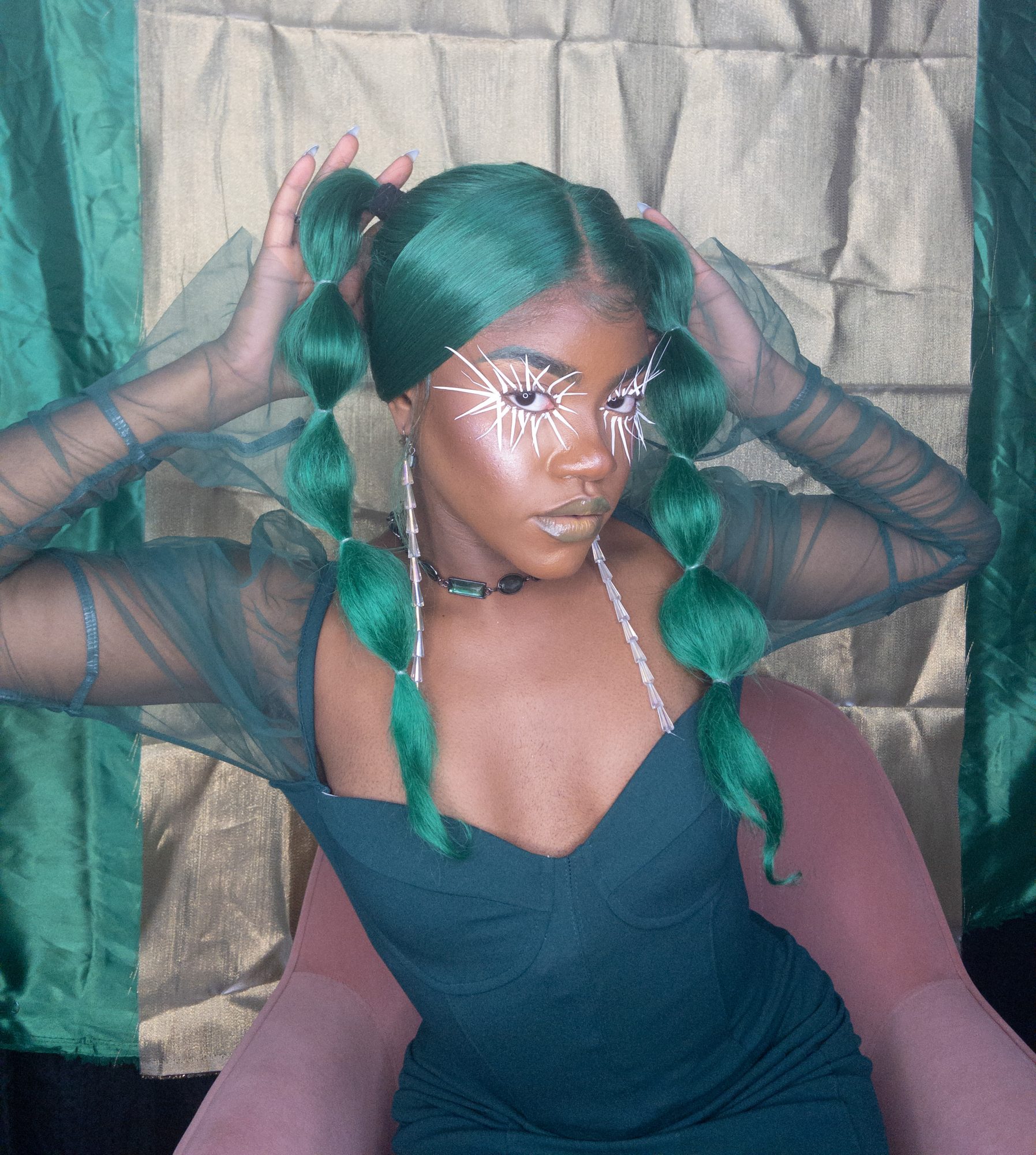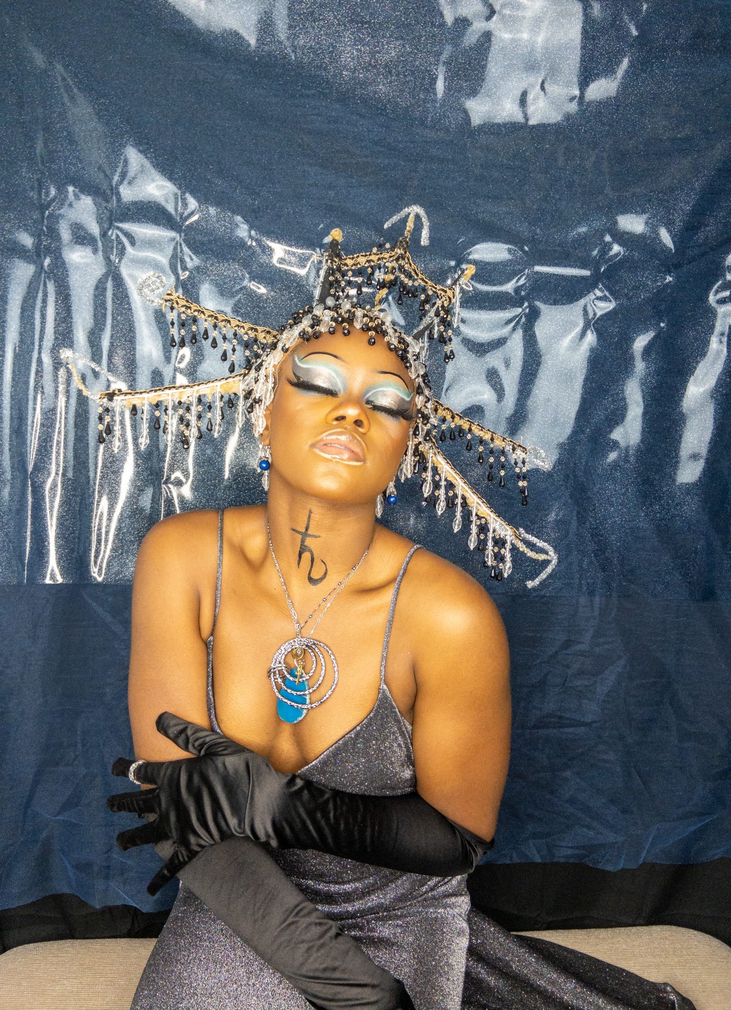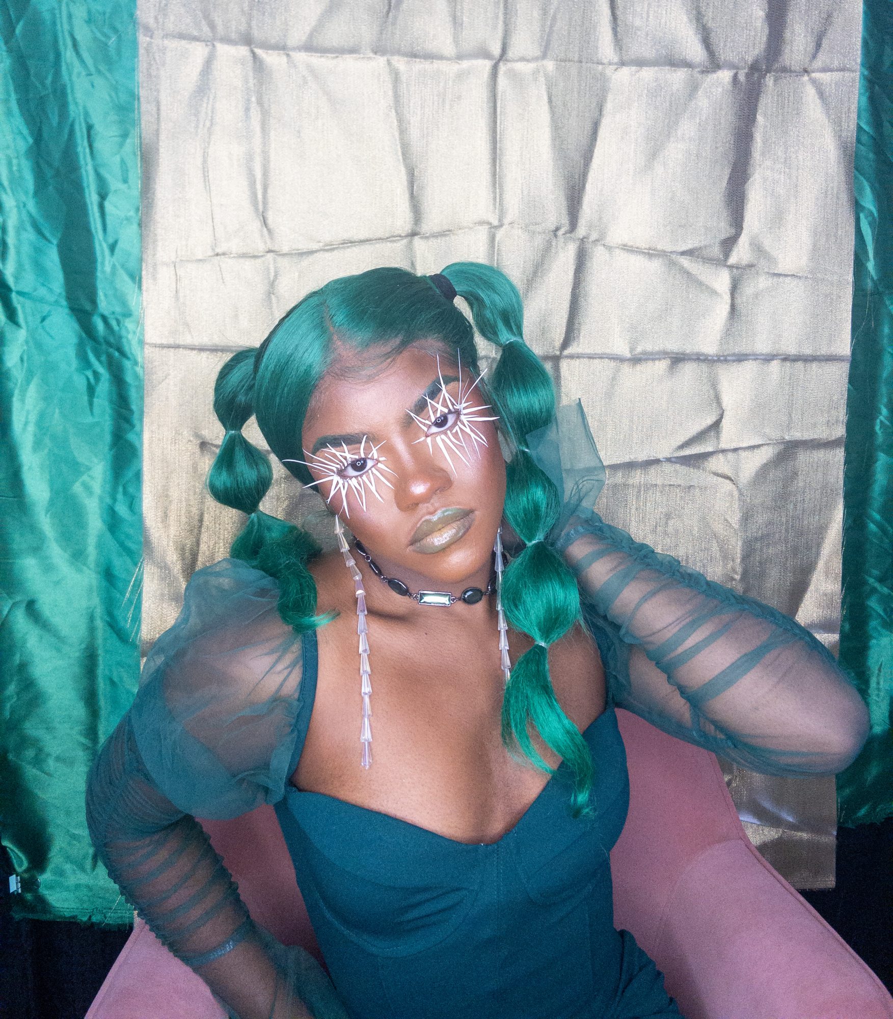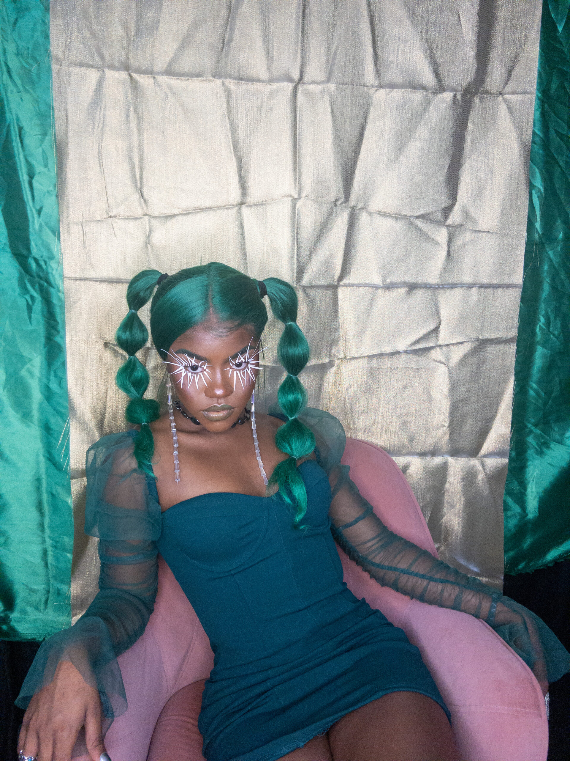I create multimedia projects to think critically of the human experience, especially of its abstract essences (i.e. ontology). I am interested in the fundamental ways we come to know ourselves and the environment and exist across space and time. Conducting interdisciplinary research at the interstices of Black Trans* and Feminist thought, anthropology, physical sciences, and spiritual wisdom, I examine how individual journeys and their experiences , shape present and growing constructs of the world. Through the artistry of editorial and costume makeup, cosmetology, and the visual arts, I imagine alternative landscapes in which the versatility of human form and experience are expressed. My work uses a multitude of shapes and colors, textures, gradients, fabrics, and materials to represent my expectations and aspirations for our world. I believe digesting different artistic experiences can be a catalyst for progression, can inspire new insight and perspectives. My work promotes meditation on collective healing and how we can utilize the wisdom of the past to take advantage of the present in order to manifest our most desired future?