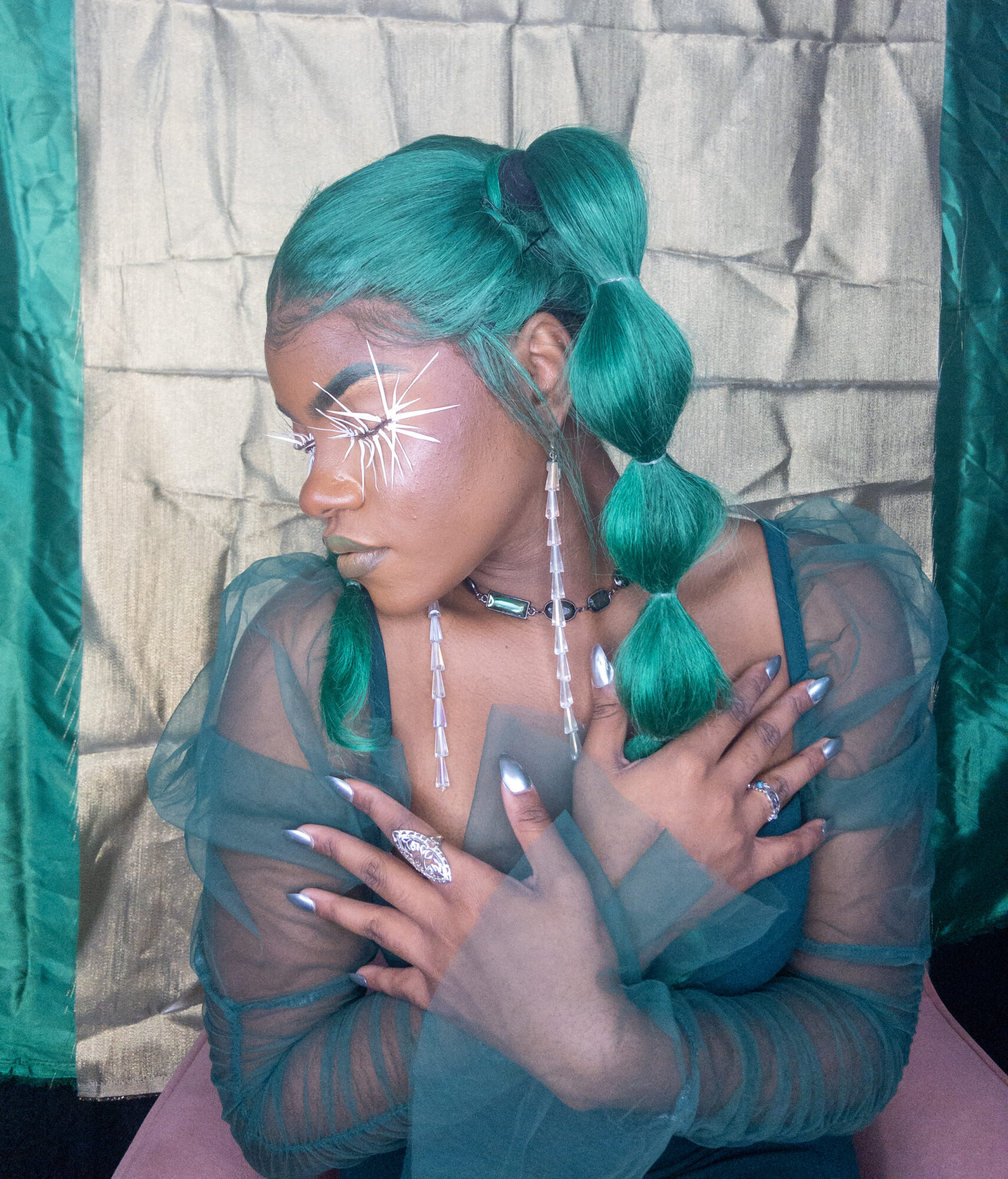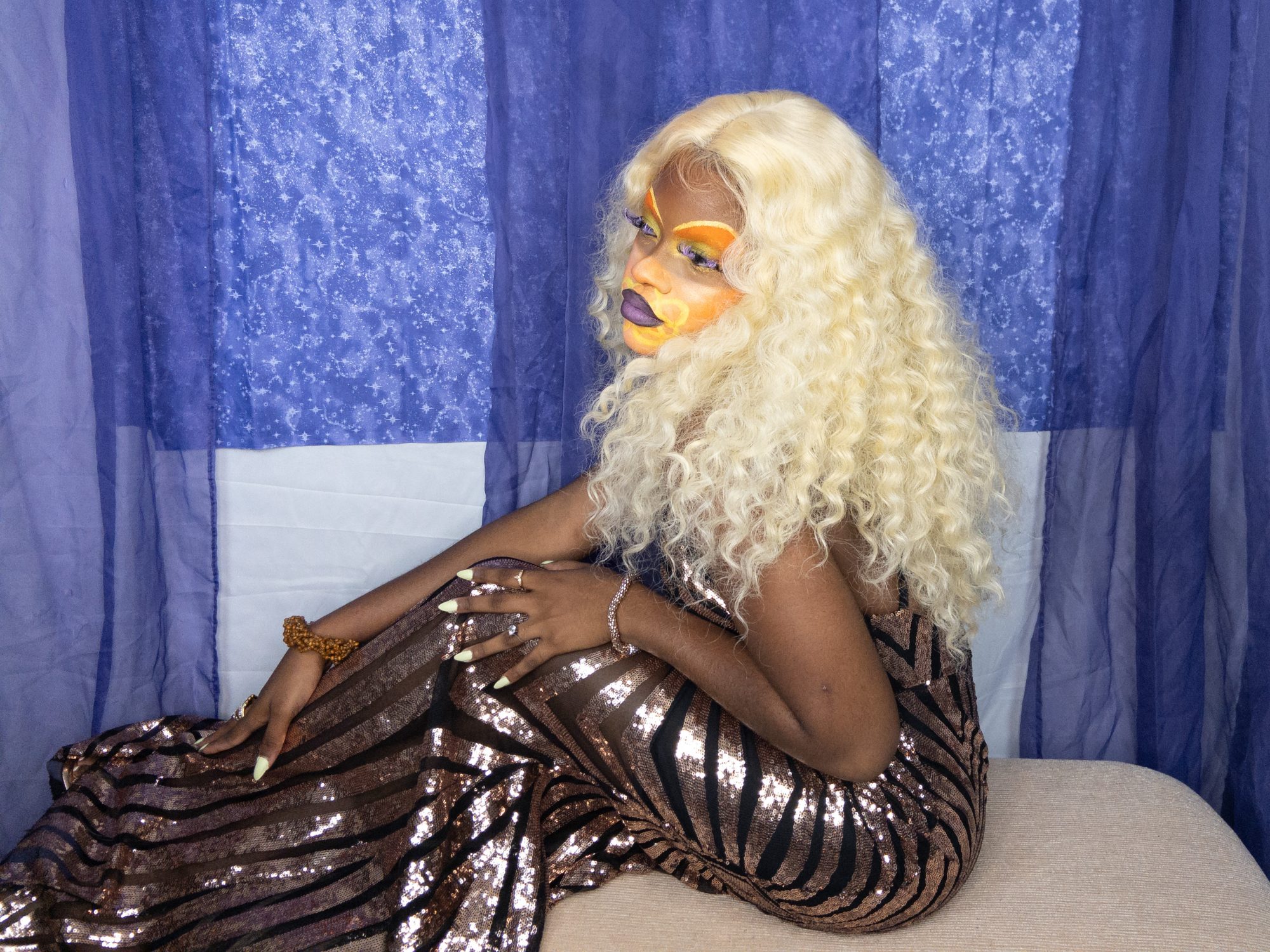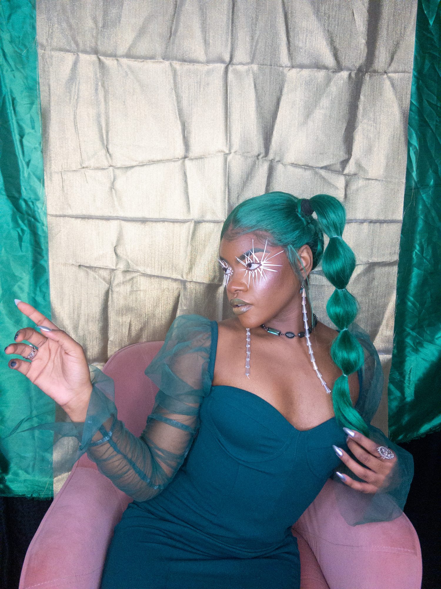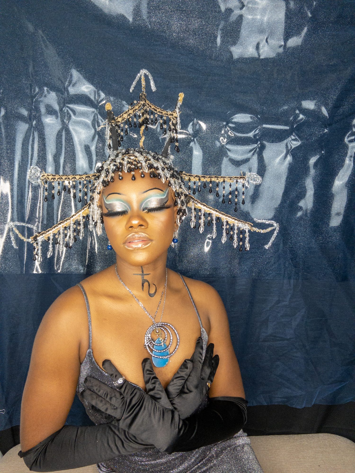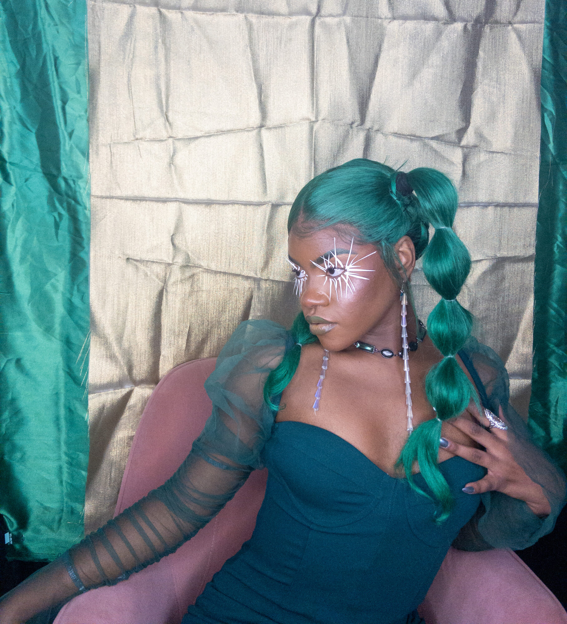 I create multimedia projects to think critically of the human experience, especially of its abstract essences (i.e. ontology). I am interested in the fundamental ways we come to know ourselves and the environment and exist across space and time. Conducting interdisciplinary research at the interstices of Black Trans* and Feminist thought, anthropology, physical sciences, and spiritual wisdom, I examine how individual journeys and their experiences , shape present and growing constructs of the world. Through the artistry of editorial and costume makeup, cosmetology, and the visual arts, I imagine alternative landscapes in which the versatility of human form and experience are expressed. My work uses a multitude of shapes and colors, textures, gradients, fabrics, and materials to represent my expectations and aspirations for our world. I believe digesting different artistic experiences can be a catalyst for progression, can inspire new insight and perspectives. My work promotes meditation on collective healing and how we can utilize the wisdom of the past to take advantage of the present in order to manifest our most desired future?