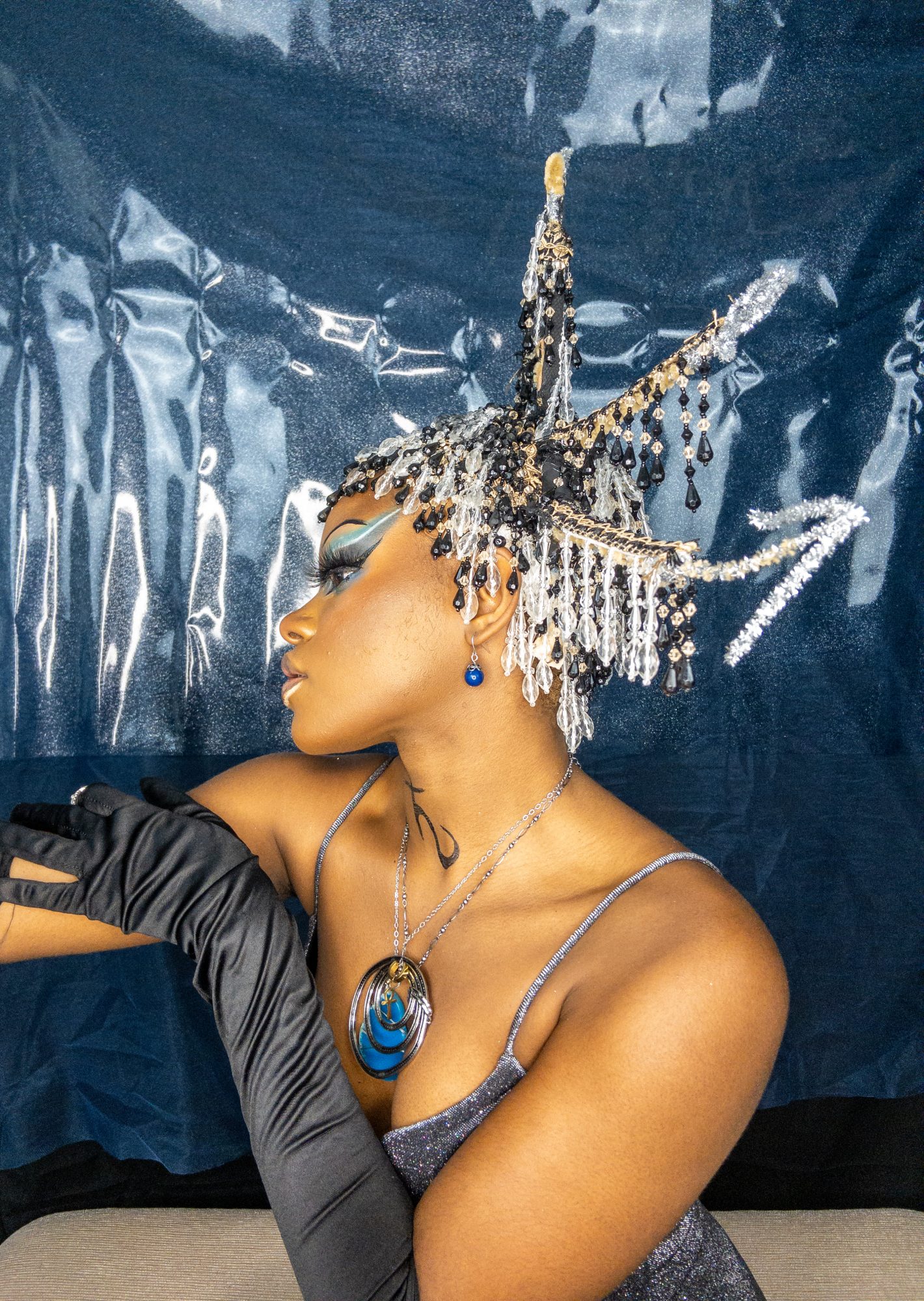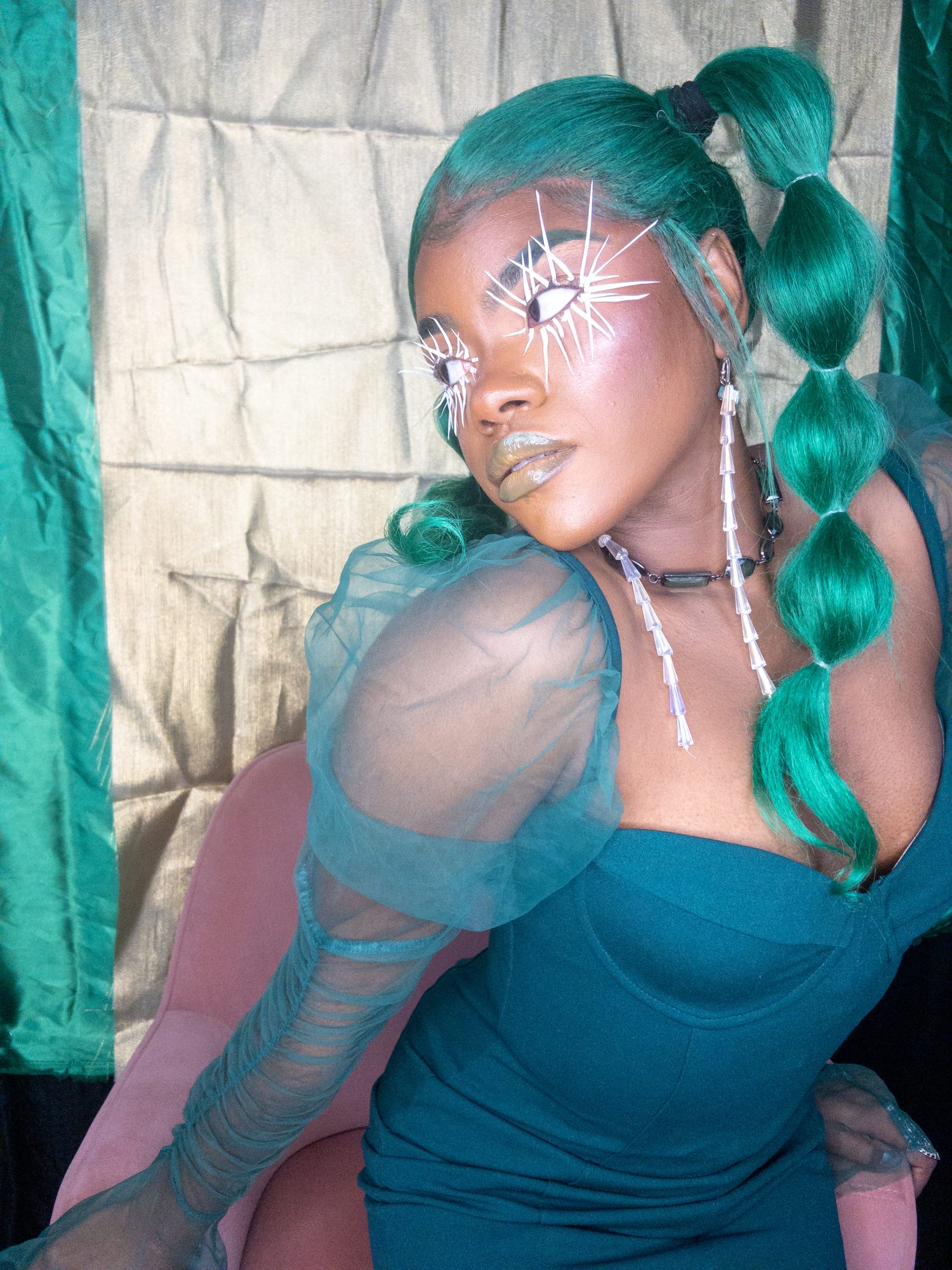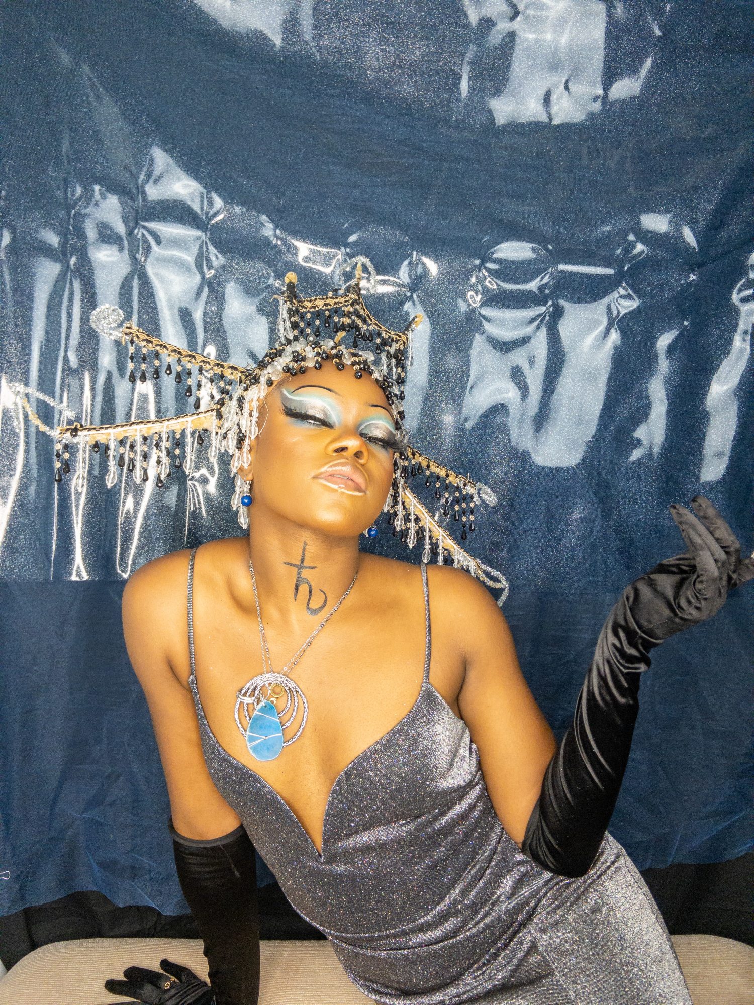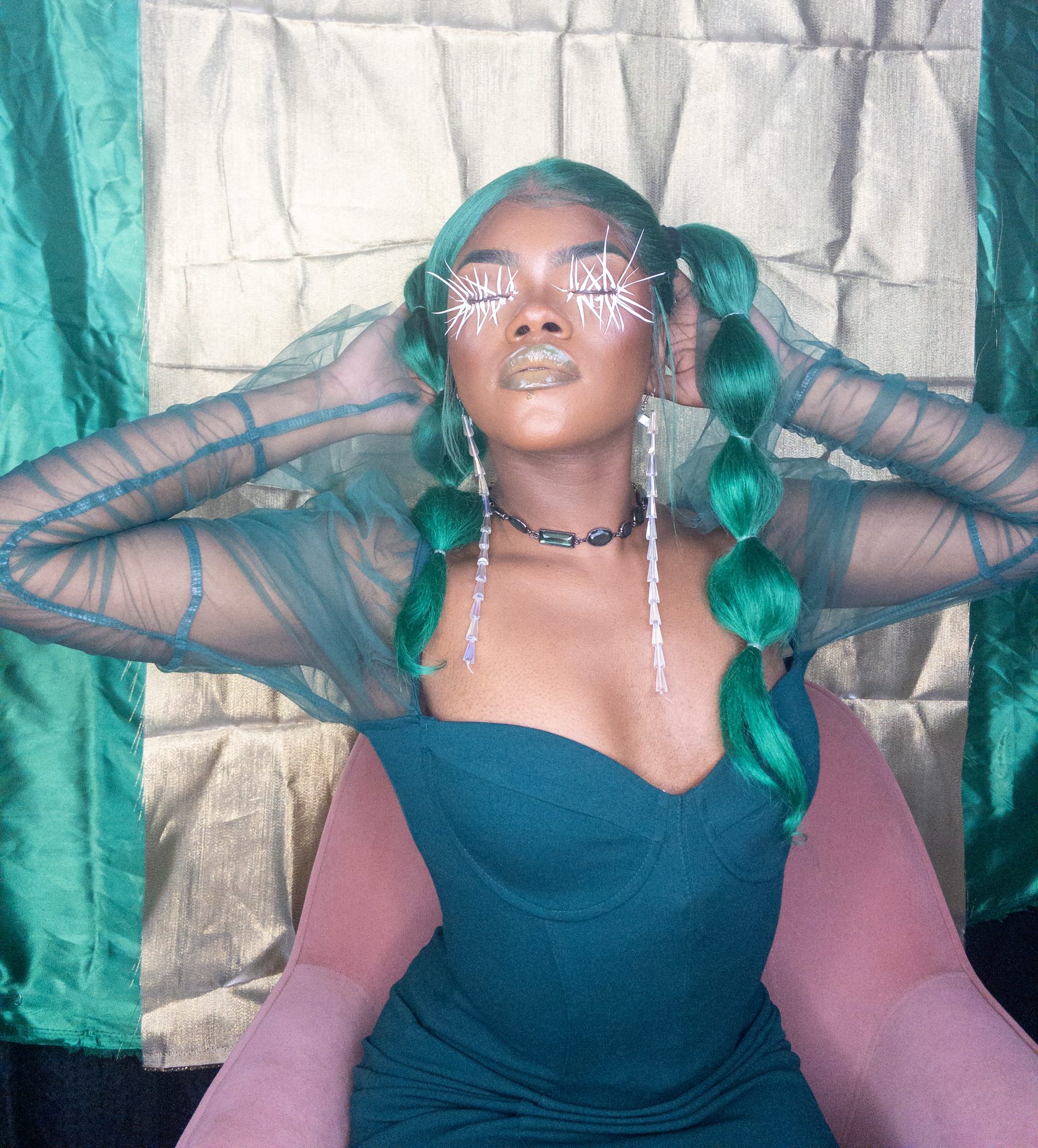 I create multimedia projects to think critically of the human experience, especially of its abstract essences (i.e. ontology). I am interested in the fundamental ways we come to know ourselves and the environment and exist across space and time. Conducting interdisciplinary research at the interstices of Black Trans* and Feminist thought, anthropology, physical sciences, and spiritual wisdom, I examine how individual journeys and their experiences , shape present and growing constructs of the world. Through the artistry of editorial and costume makeup, cosmetology, and the visual arts, I imagine alternative landscapes in which the versatility of human form and experience are expressed. My work uses a multitude of shapes and colors, textures, gradients, fabrics, and materials to represent my expectations and aspirations for our world. I believe digesting different artistic experiences can be a catalyst for progression, can inspire new insight and perspectives. My work promotes meditation on collective healing and how we can utilize the wisdom of the past to take advantage of the present in order to manifest our most desired future?