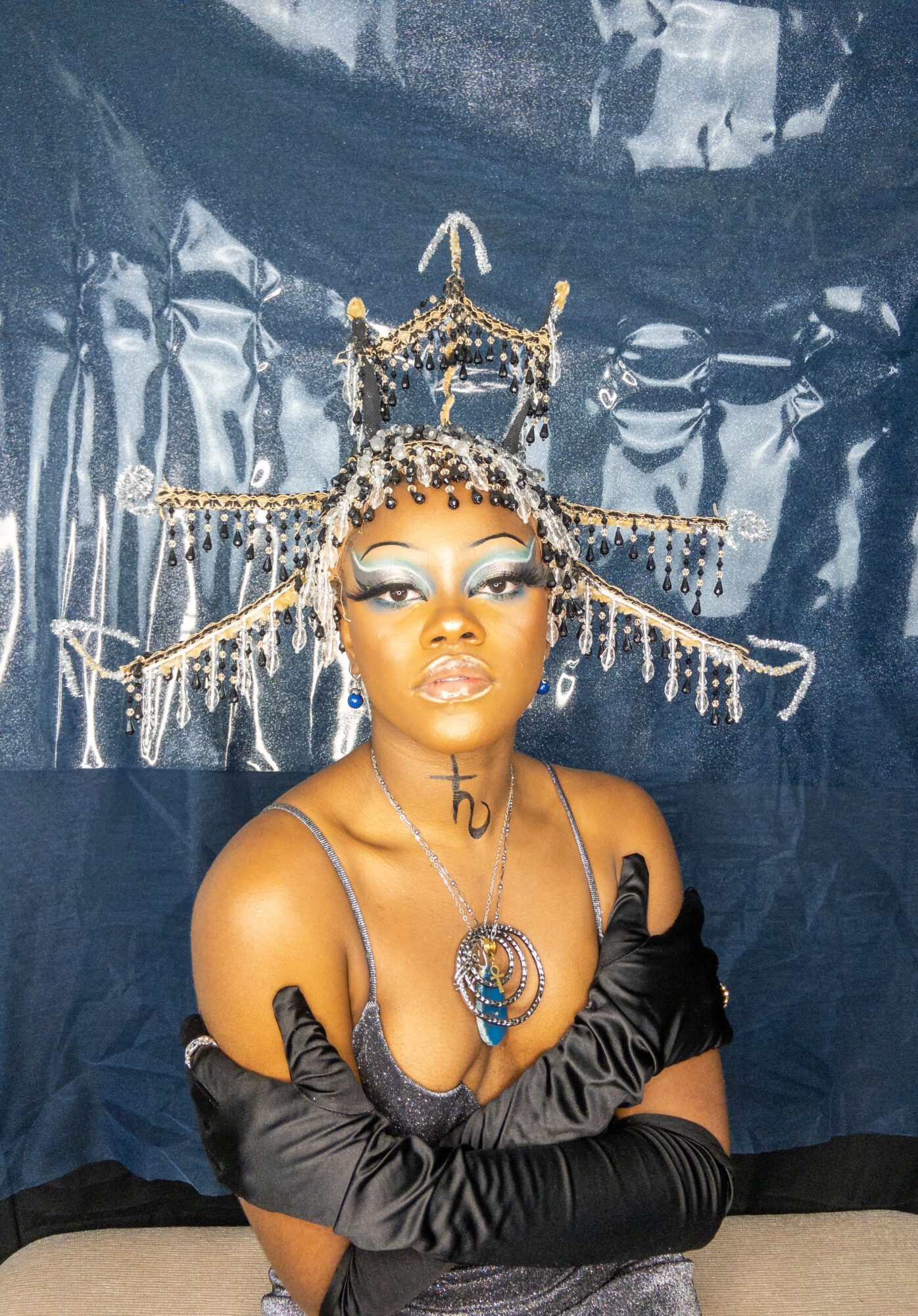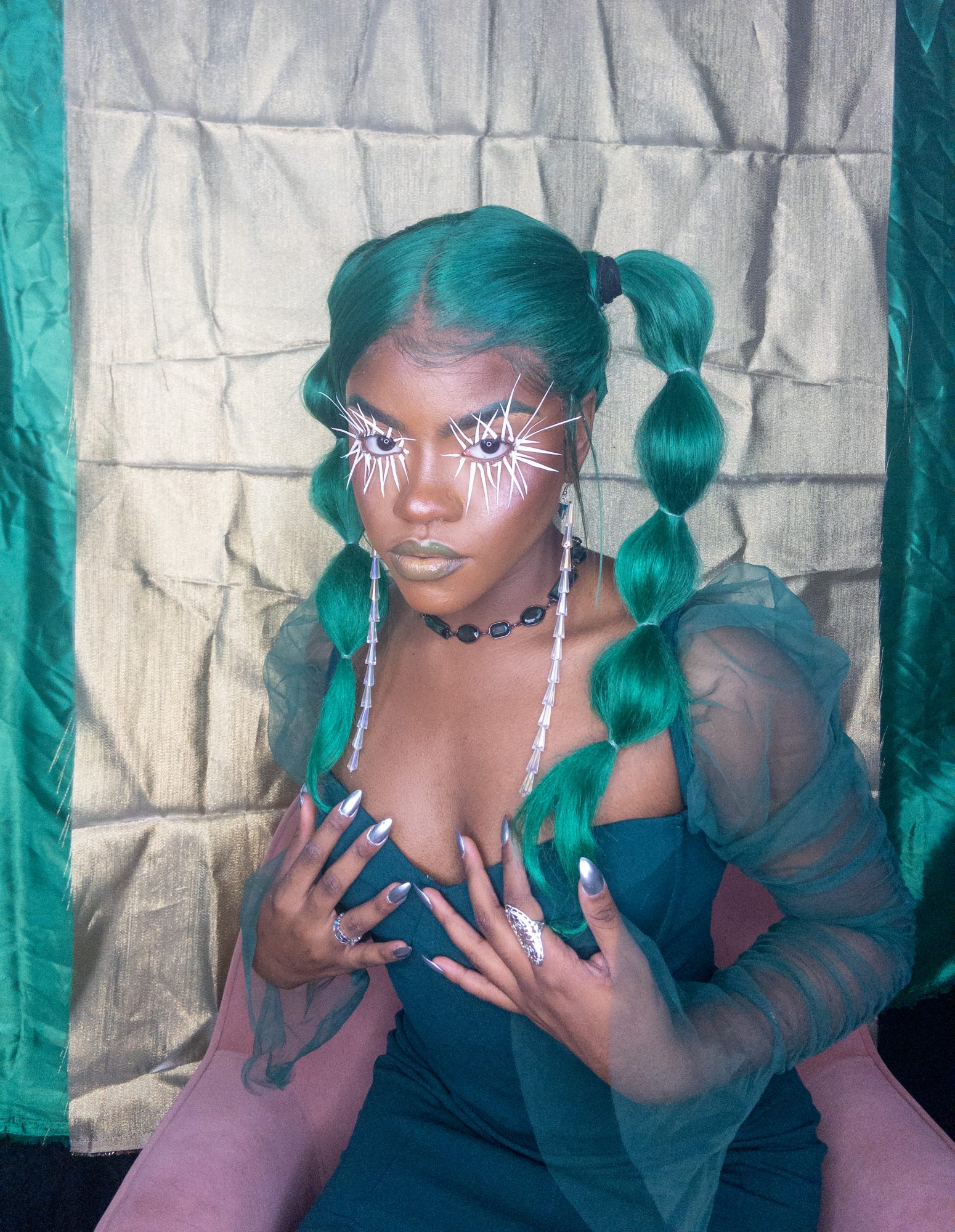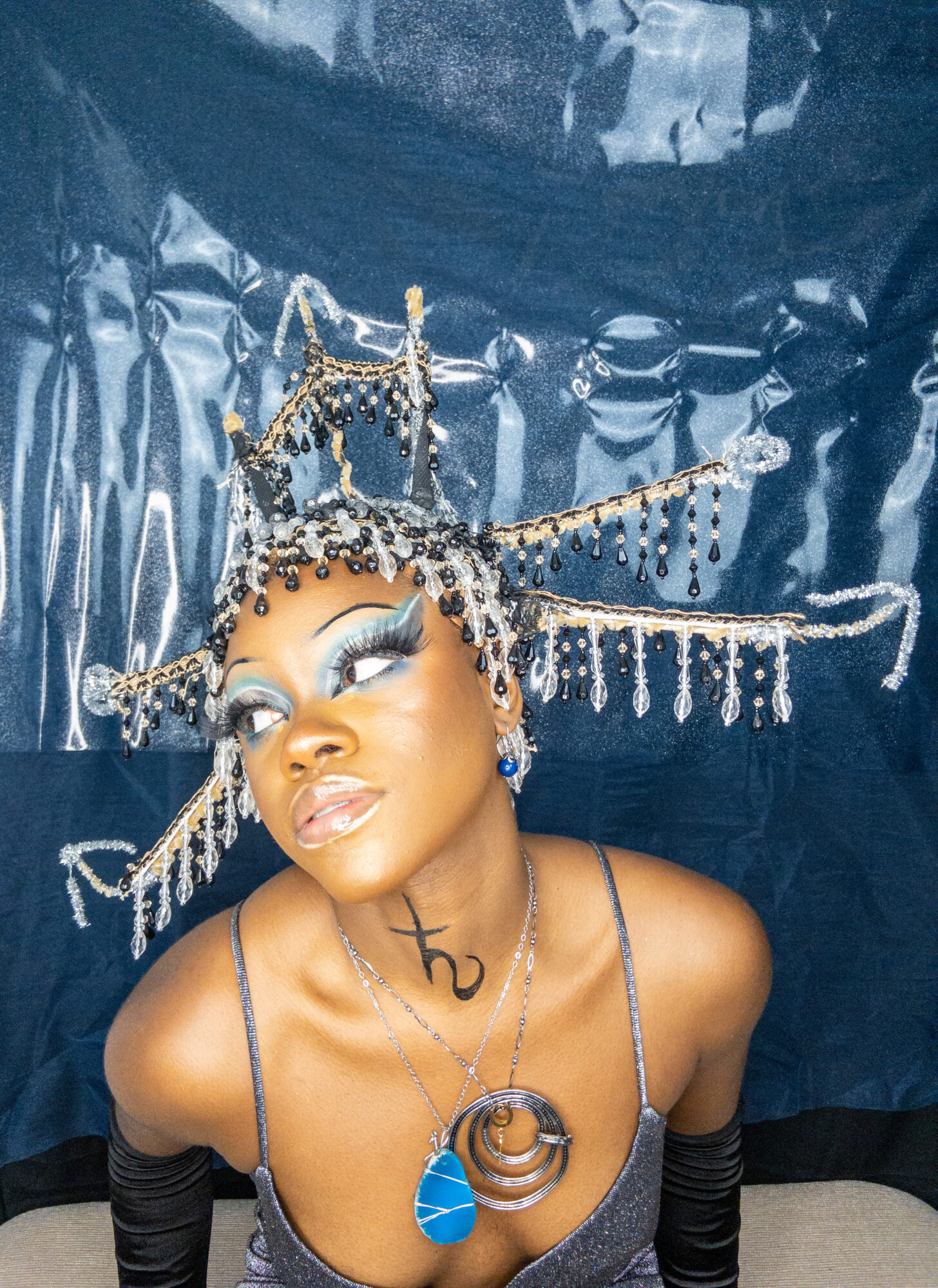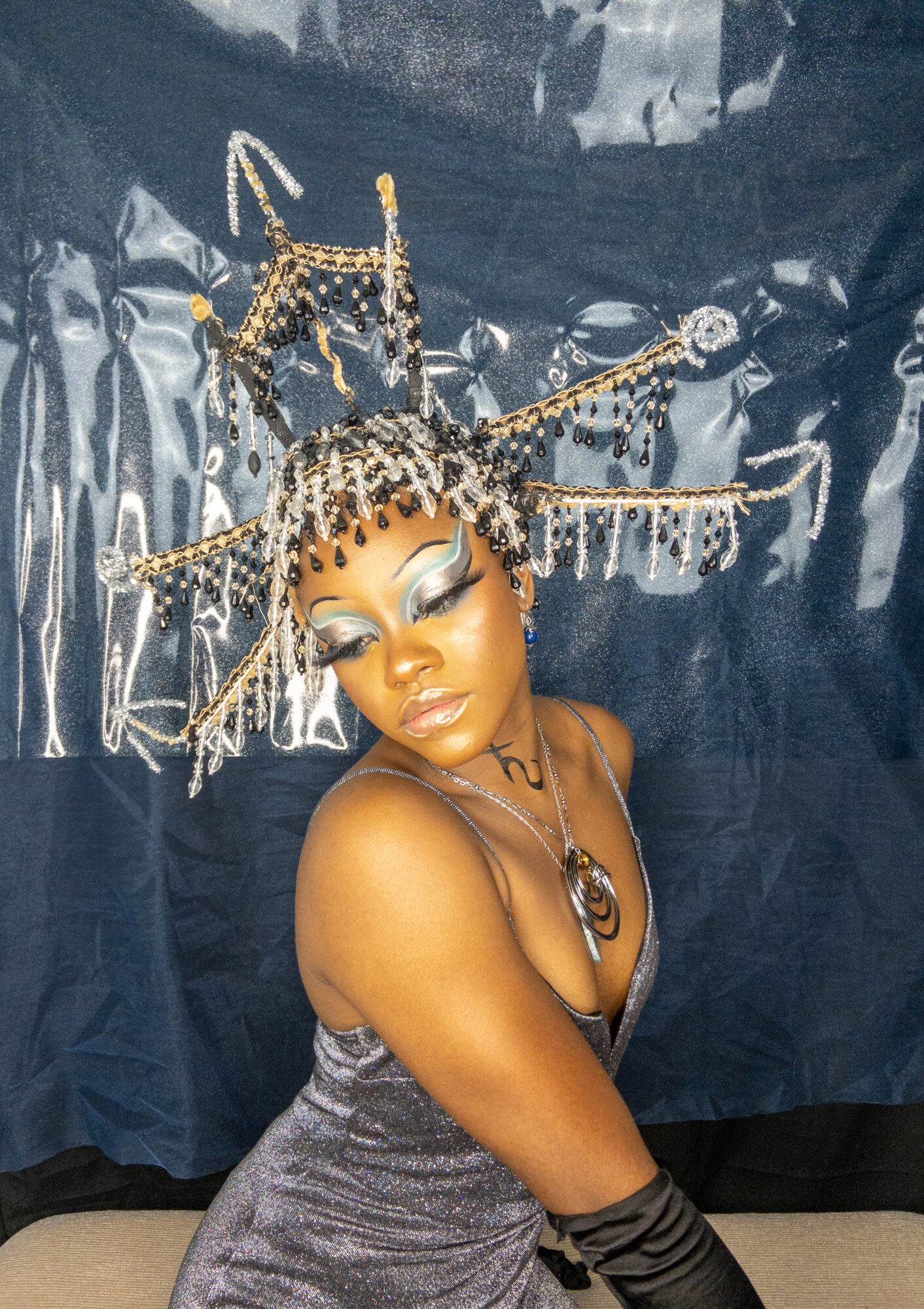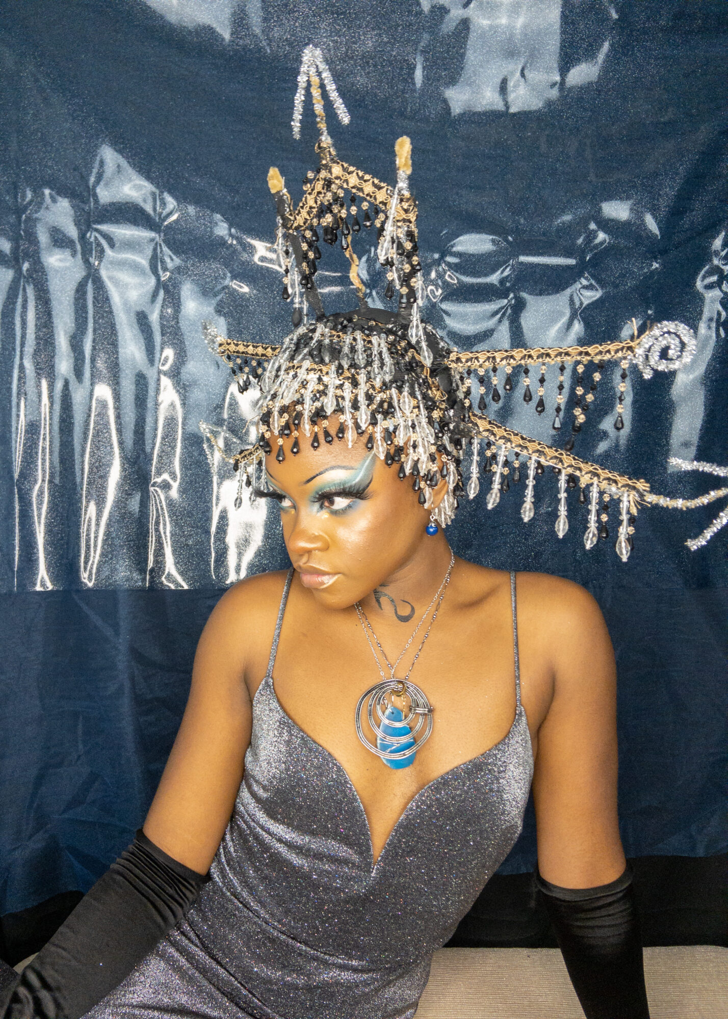I create multimedia projects to think critically of the human experience, especially of its abstract essences (i.e. ontology). I am interested in the fundamental ways we come to know ourselves and the environment and exist across space and time. Conducting interdisciplinary research at the interstices of Black Trans* and Feminist thought, anthropology, physical sciences, and spiritual wisdom, I examine how individual journeys and their experiences , shape present and growing constructs of the world. Through the artistry of editorial and costume makeup, cosmetology, and the visual arts, I imagine alternative landscapes in which the versatility of human form and experience are expressed. My work uses a multitude of shapes and colors, textures, gradients, fabrics, and materials to represent my expectations and aspirations for our world. I believe digesting different artistic experiences can be a catalyst for progression, can inspire new insight and perspectives. My work promotes meditation on collective healing and how we can utilize the wisdom of the past to take advantage of the present in order to manifest our most desired future?